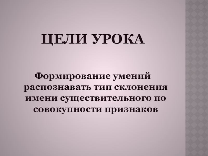 Формирование умений распознавать тип склонения имени существительного по совокупности признаковЦели урока