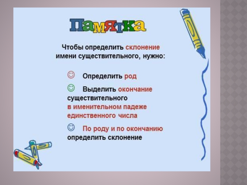 Формирование умений распознавать тип склонения имени существительного по совокупности признаков
