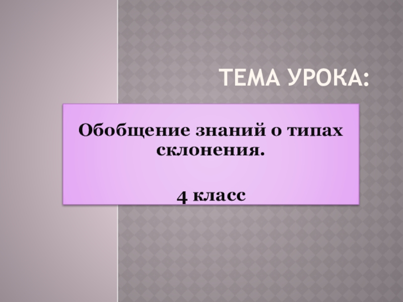 Тема урока:Обобщение знаний о типах склонения.4 класс