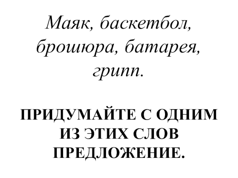 Слайд 9Маяк, баскетбол, брошюра, батарея, грипп.