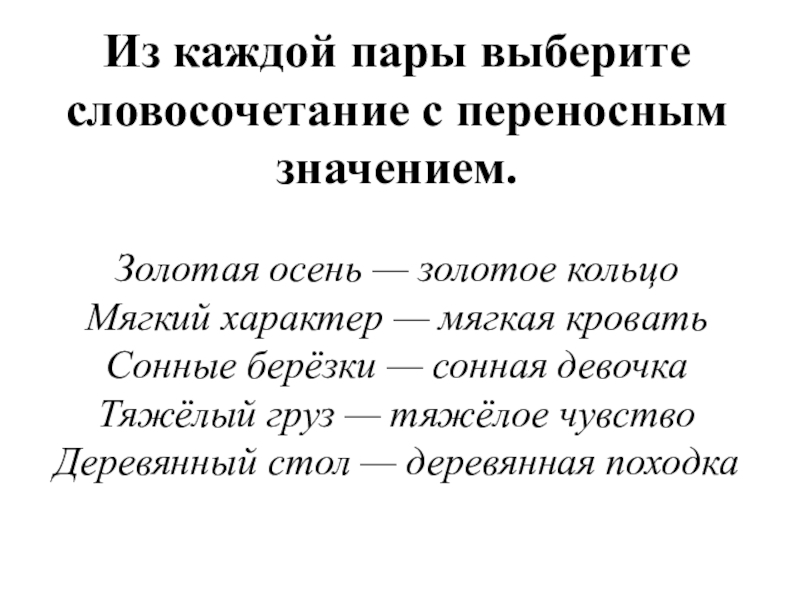 Слайд 10Из каждой пары выберите словосочетание с переносным значением.