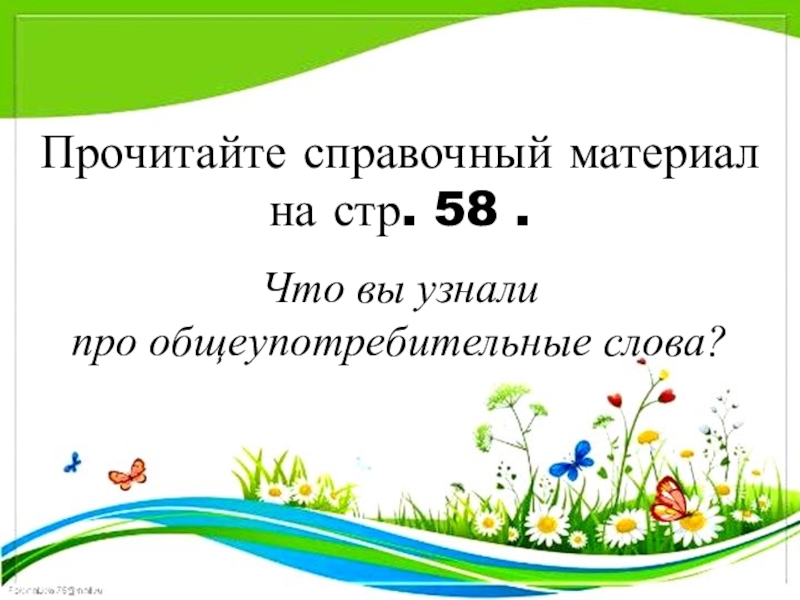 Слайд 20Прочитайте справочный материал на стр. 58 .