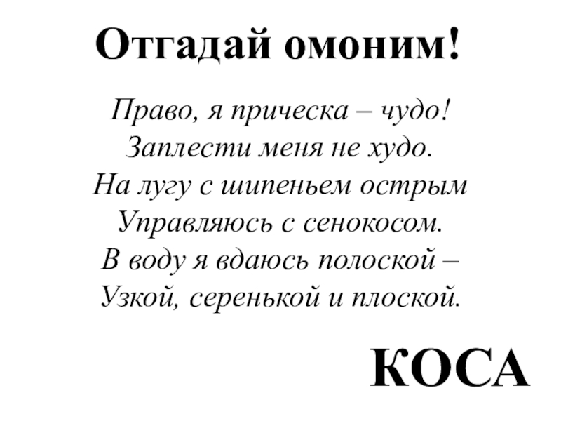 ОМОНИМЫ – слова одной и той же части речи, одинаковые по звучанию и написанию, но разные по лексическому значению.