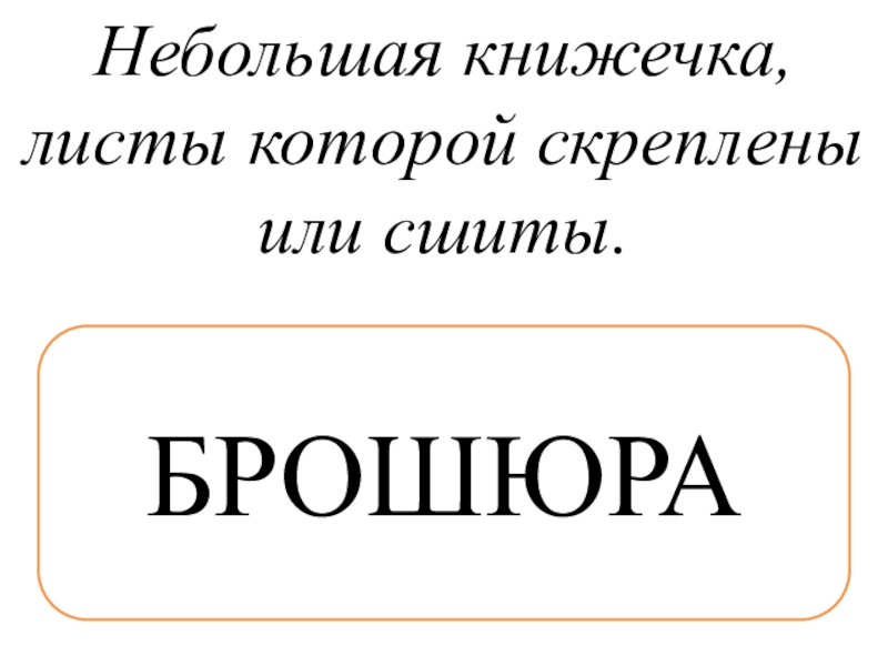 Слайд 6Небольшая книжечка, листы которой скреплены или сшиты.