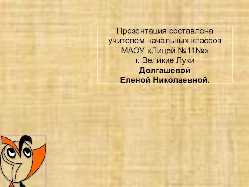 Презентация составленаучителем начальных классовМАОУ «Лицей №11№»г. Великие ЛукиДолгашевой Еленой Николаевной.