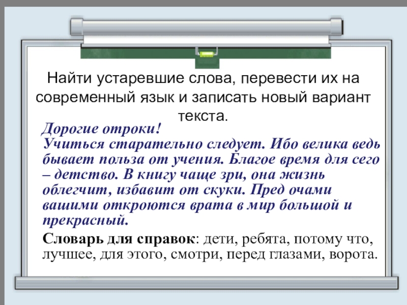 Словарь для справок: дети, ребята, потому что, лучшее, для этого, смотри, перед глазами, ворота.