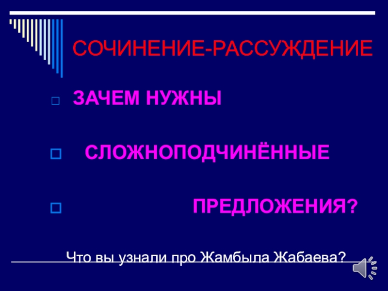 Это сайт презентаций, где можно хранить и обмениваться своими презентациями, докладами, проектами, шаблонами в формате PowerPoint с другими пользователями. Мы помогаем школьникам, студентам, учителям, преподавателям хранить и обмениваться учебными материалами.