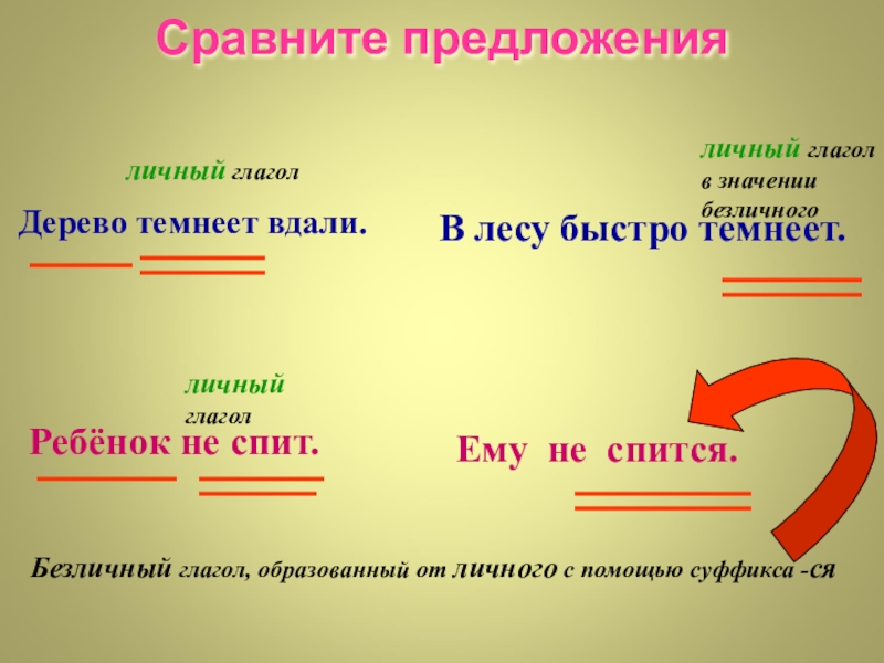 Безличный глагол, образованный от личного с помощью суффикса -ся