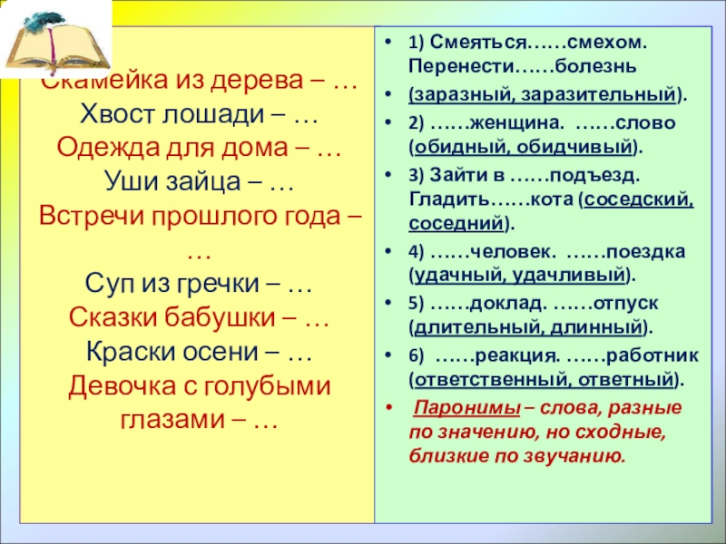 Паронимы – слова, разные по значению, но сходные, близкие по звучанию.