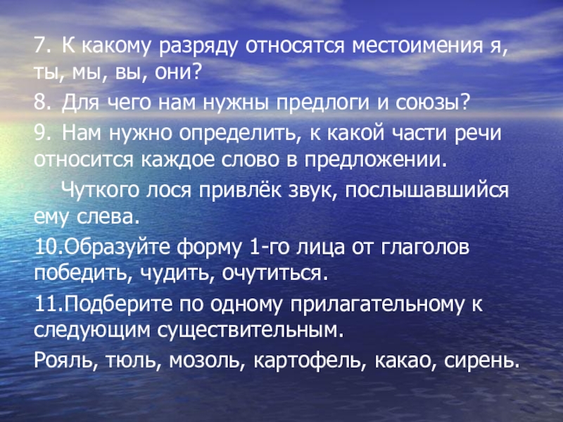 9. Нам нужно определить, к какой части речи относится каждое слово в предложении.