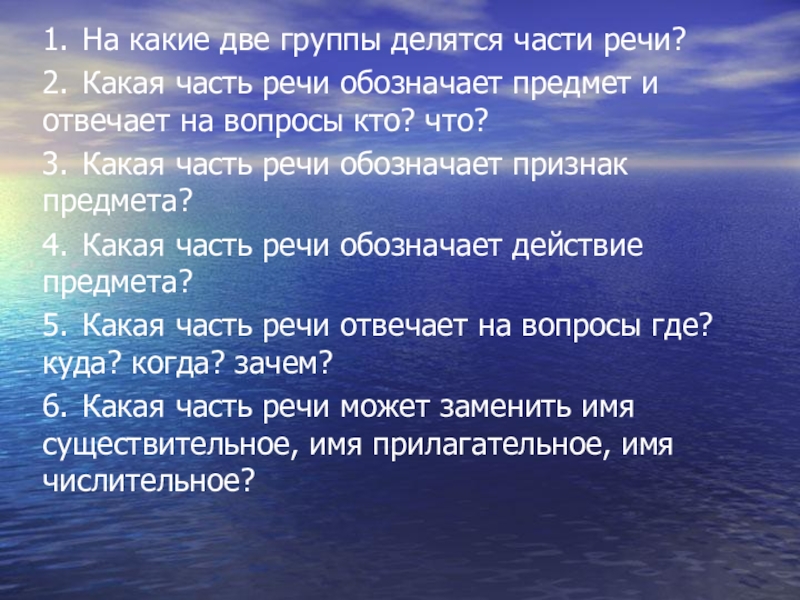 5. Какая часть речи отвечает на вопросы где? куда? когда? зачем?
