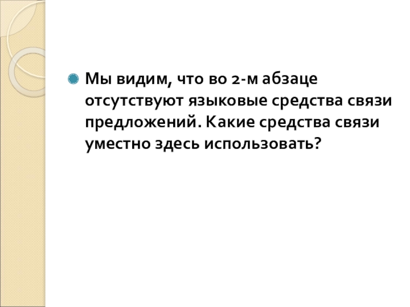 Мы видим, что во 2-м абзаце отсутствуют языковые средства связи предложений.