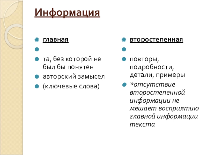 *отсутствие второстепенной информации не мешает восприятию главной информации текста