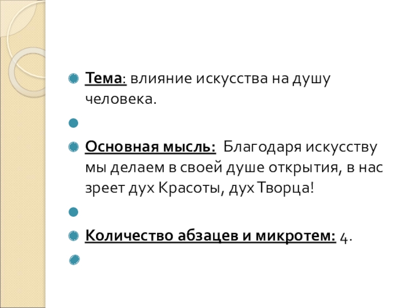 Благодаря искусству в нас зреет дух Творца, мы делаем в своей душе открытия, стараемся стать лучше, внести в мир дух Красоты.