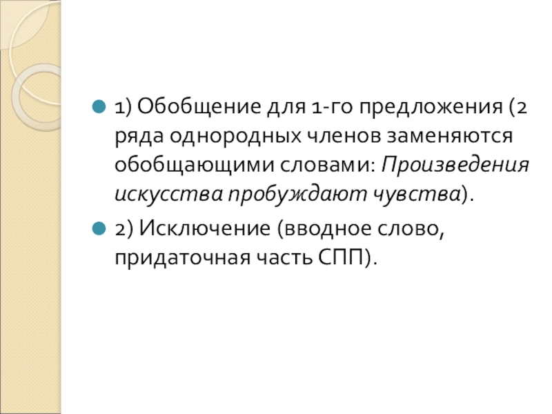 1) Обобщение для 1-го предложения (2 ряда однородных членов заменяются обобщающими