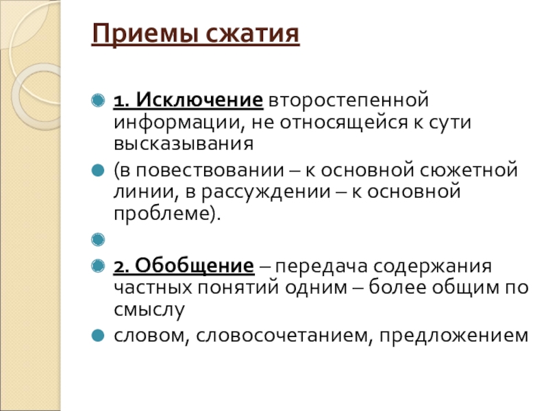 1. Исключение второстепенной информации, не относящейся к сути высказывания