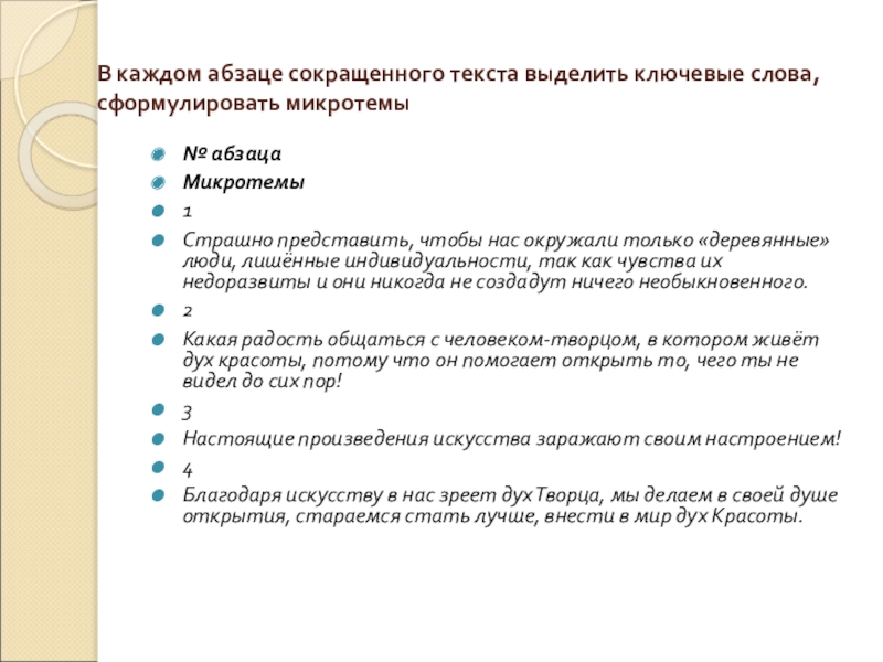 Слайд 25В каждом абзаце сокращенного текста выделить ключевые слова, сформулировать микротемы