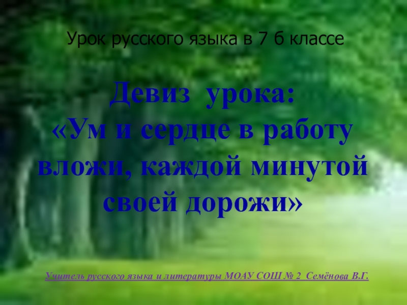 Учитель русского языка и литературы МОАУ СОШ № 2 Семёнова В.Г.
