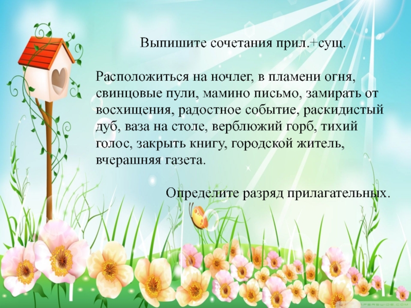 Выпишите сочетания прил.+сущ. Расположиться на ночлег, в пламени огня, свинцовые пули, мамино письмо, замирать от восхищения, радостное
