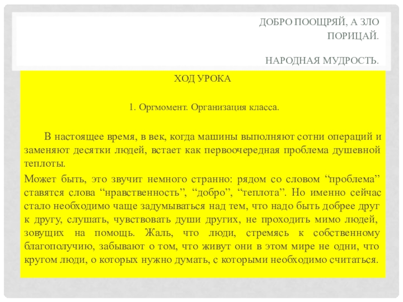 Может быть, это звучит немного странно: рядом со словом “проблема” ставятся слова “нравственность”, “добро”, “теплота”. Но именно сейчас стало необходимо чаще задумываться над тем, что надо быть добрее друг к другу, слушать, чувствовать души других, не проходить мимо людей, зовущих на помощь. Жаль, что люди, стремясь к собственному благополучию, забывают о том, что живут они в этом мире не одни, что кругом люди, о которых нужно думать, с которыми необходимо считаться.