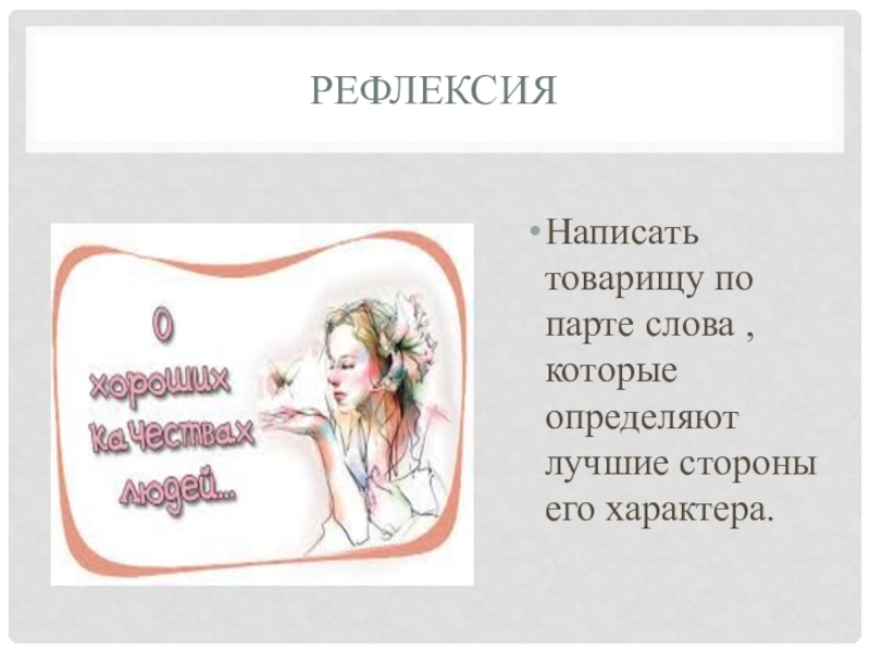 Написать товарищу по парте слова , которые определяют лучшие стороны его