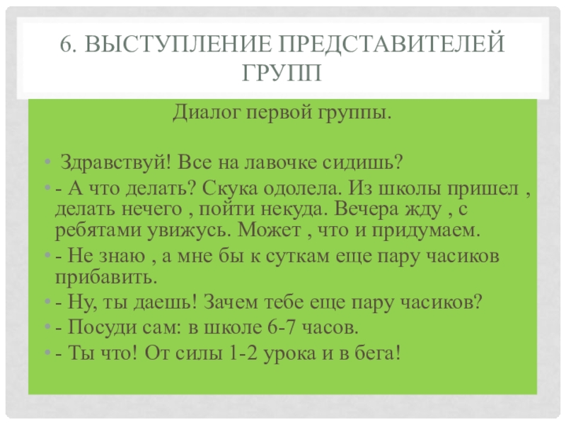 Учащиеся первой группы получают задание составить диалог «От скуки