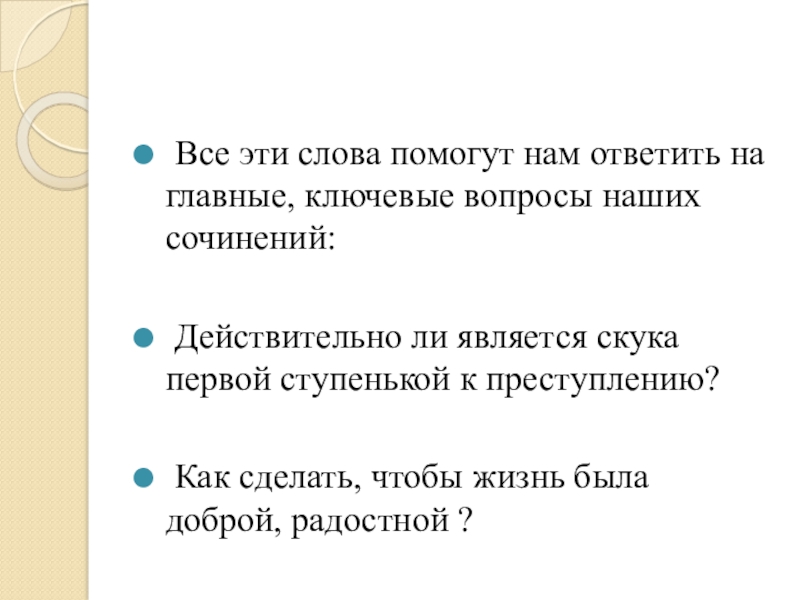 Слайд 12 Все эти слова помогут нам ответить на главные, ключевые вопросы