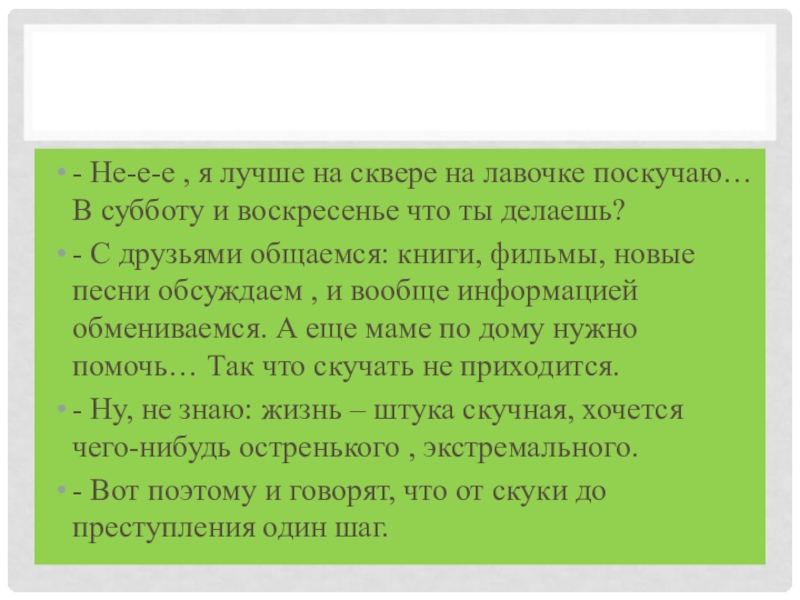 Слайд 19- Не-е-е , я лучше на сквере на лавочке поскучаю… В