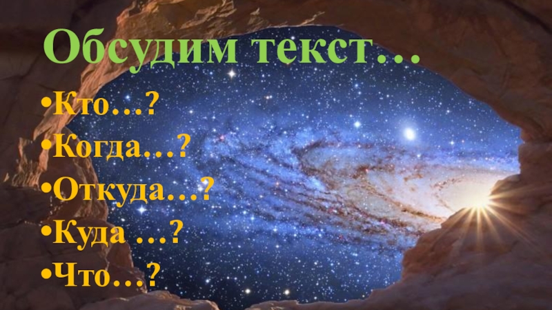 Обсудим текст…Кто…?Когда…?Откуда…? Куда …?Что…?