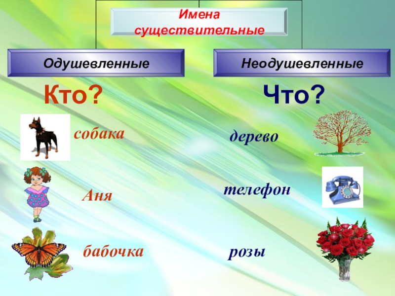 Презентация, доклад по русскому языку на тему: Одушевлённые и неодушевлённые имена существительные 2 класс
