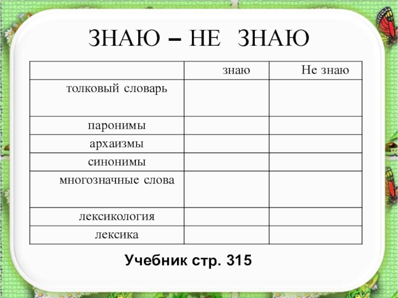 ЗНАЮ – НЕ ЗНАЮУчебник стр. 315