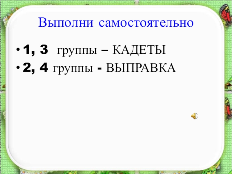 Выполни самостоятельно1, 3 группы – КАДЕТЫ2, 4 группы - ВЫПРАВКА
