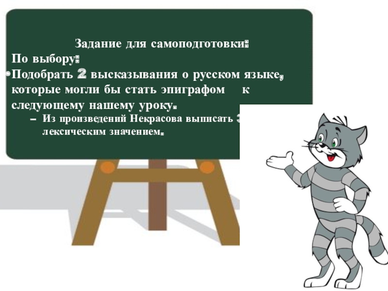 Задание для самоподготовки:По выбору:Подобрать 2 высказывания о русском языке, которые могли бы стать эпиграфом  к следующему