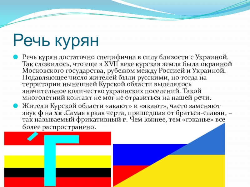 Речь курянРечь курян достаточно специфична в силу близости с Украиной. Так сложилось, что еще в XVII веке