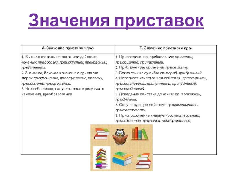 Значения приставок