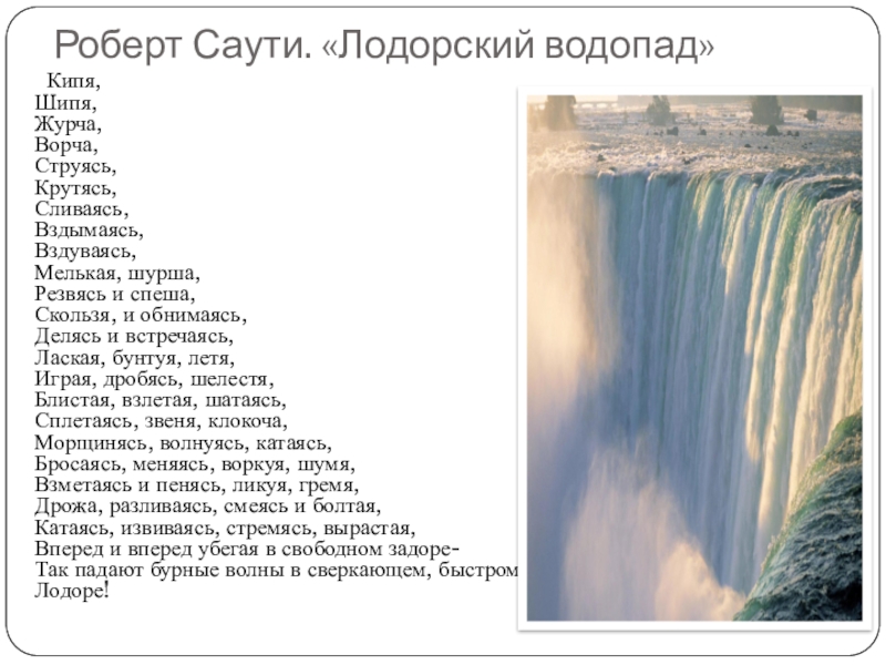 Слайд 9Роберт Саути. «Лодорский водопад»