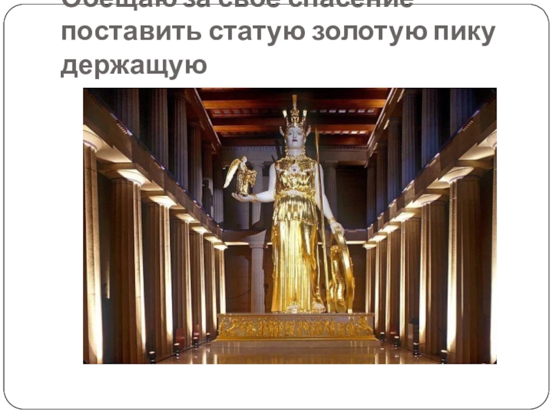 Слайд 2Обещаю за своё спасение поставить статую золотую пику держащую