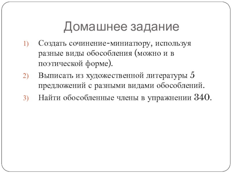 Создать сочинение-миниатюру, используя разные виды обособления (можно и в поэтической