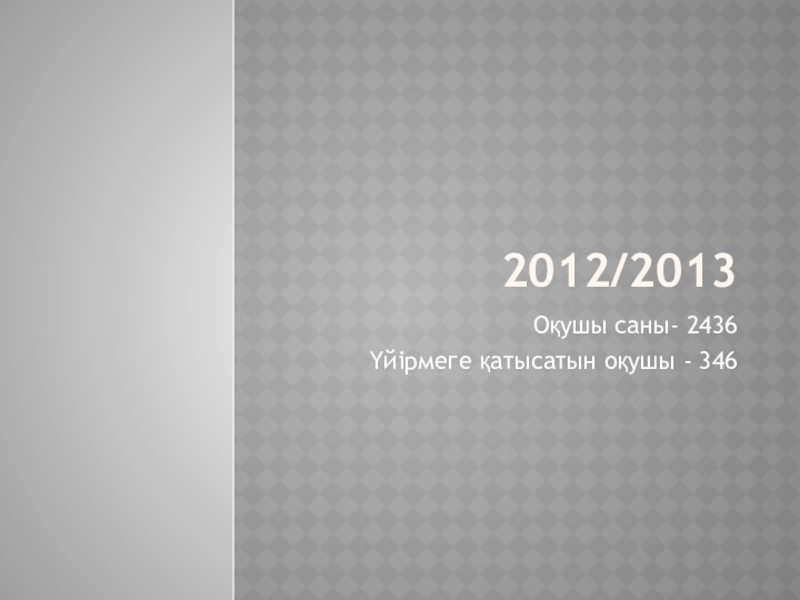 2012/2013 Оқушы саны- 2436Үйірмеге қатысатын оқушы - 346