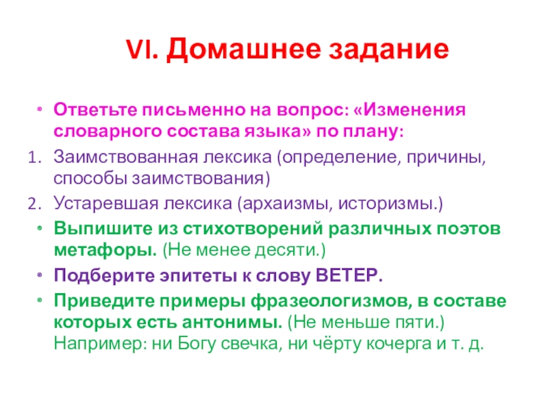 Ответьте письменно на вопрос: «Изменения словарного состава языка» по