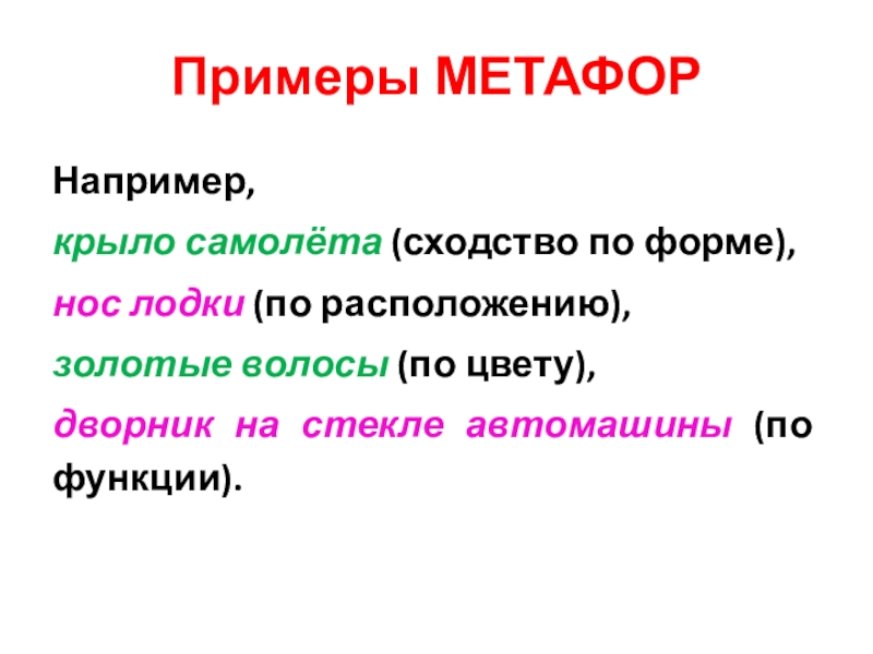 Перенос значения одного предмета на другой на основе сходства – МЕТАФОРА.