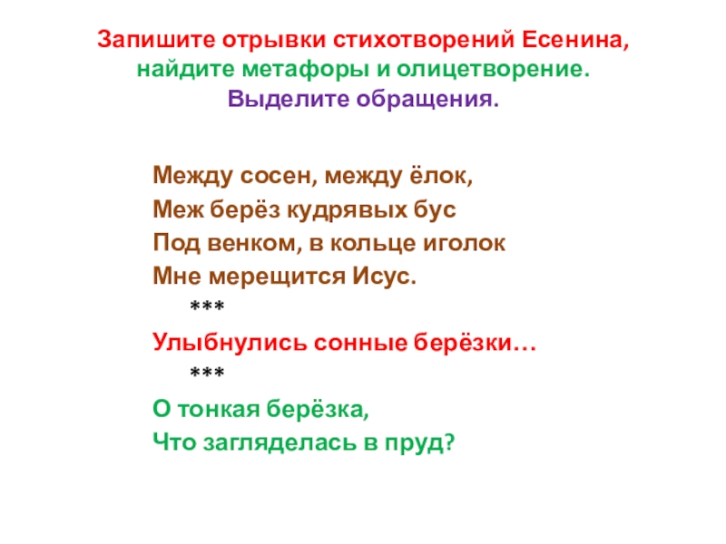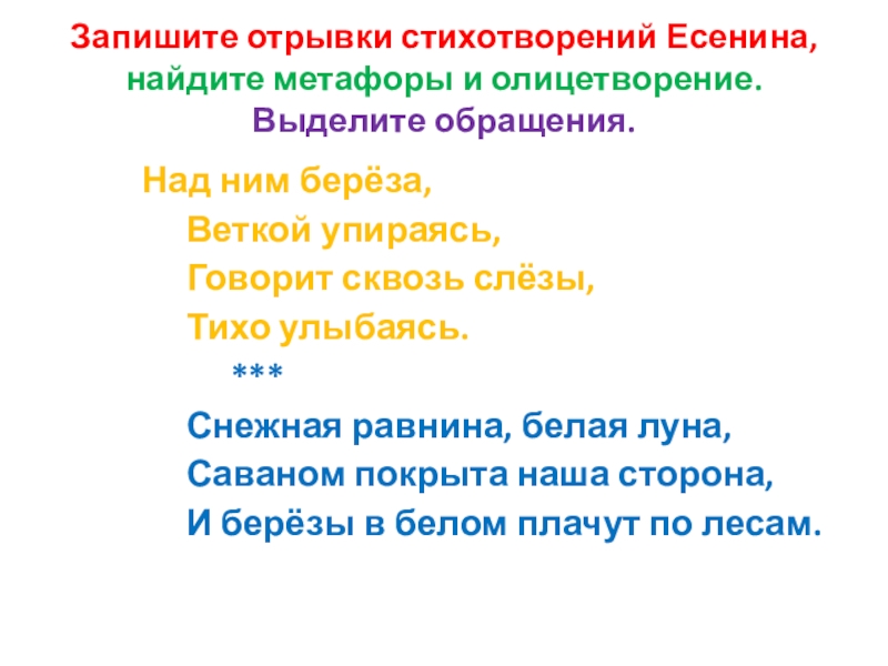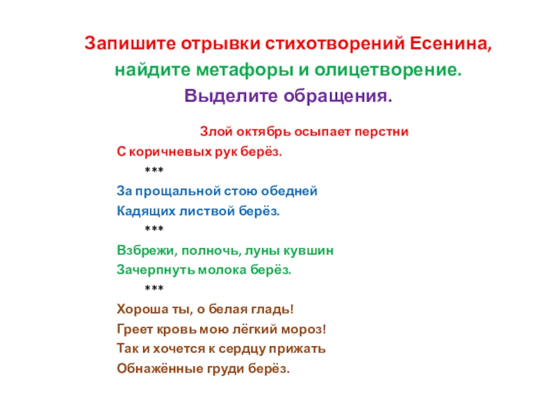 Выпишите из стихотворений различных поэтов метафоры. (Не менее десяти.)