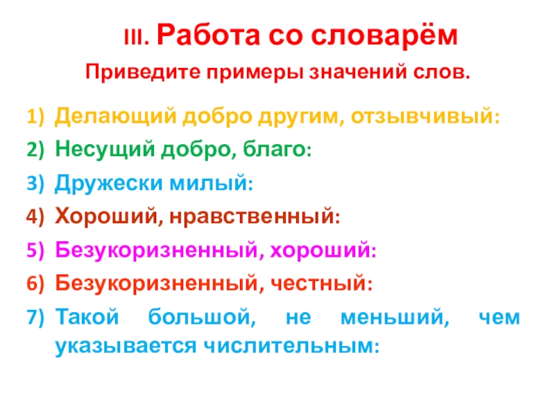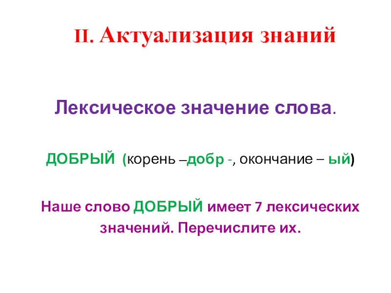 Наше слово ДОБРЫЙ имеет 7 лексических значений. Перечислите их.