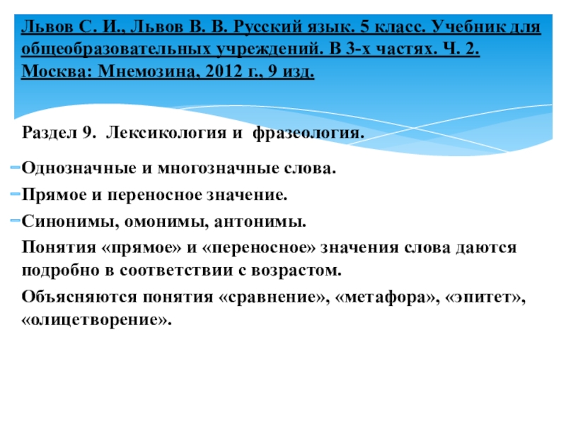 Слайд 23Львов С. И., Львов В. В. Русский язык. 5 класс. Учебник