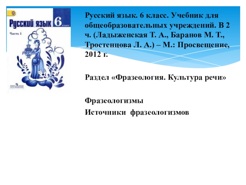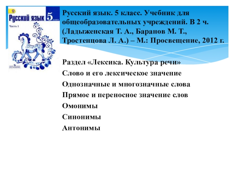 (Ладыженская Т. А., Баранов М. Т., Тростенцова Л. А.) – М.: Просвещение, 2012 г.