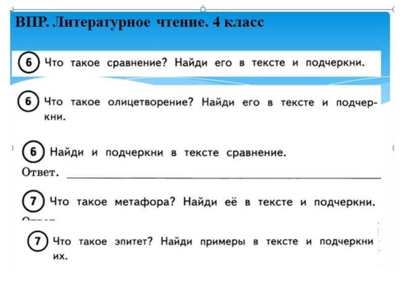 Художественная речь. Изобразительно-выразительные средства: эпитеты, метафоры, олицетворение, сравнение, гипербола, антитеза, аллегория)