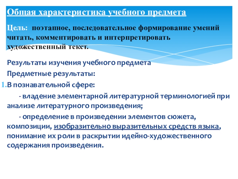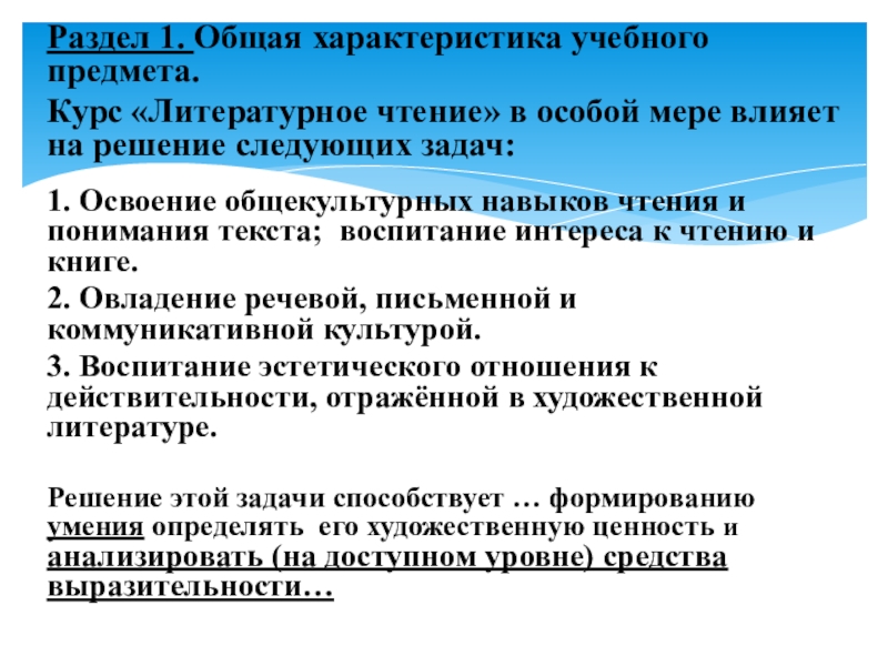 Слайд 5Раздел 1. Общая характеристика учебного предмета.