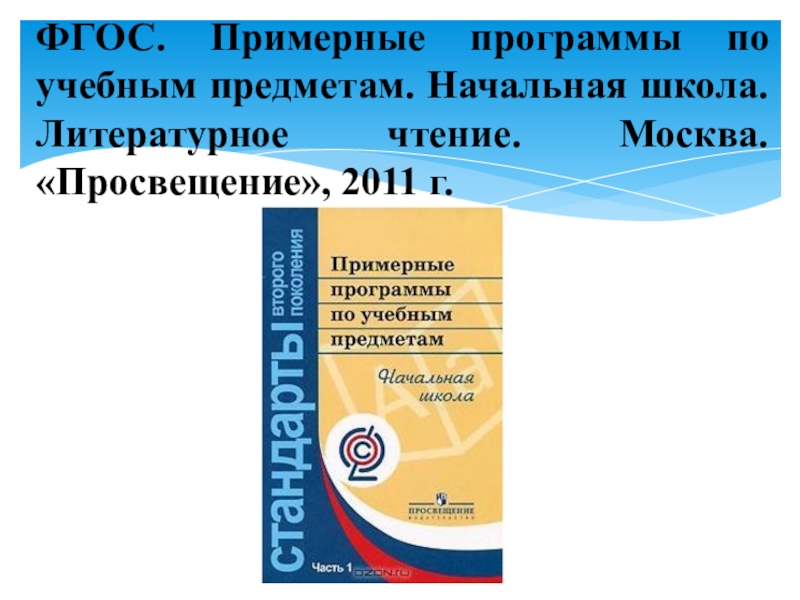 Слайд 4ФГОС. Примерные программы по учебным предметам. Начальная школа. Литературное чтение. Москва.