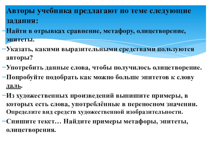 Слайд 24Авторы учебника предлагают по теме следующие задания:
