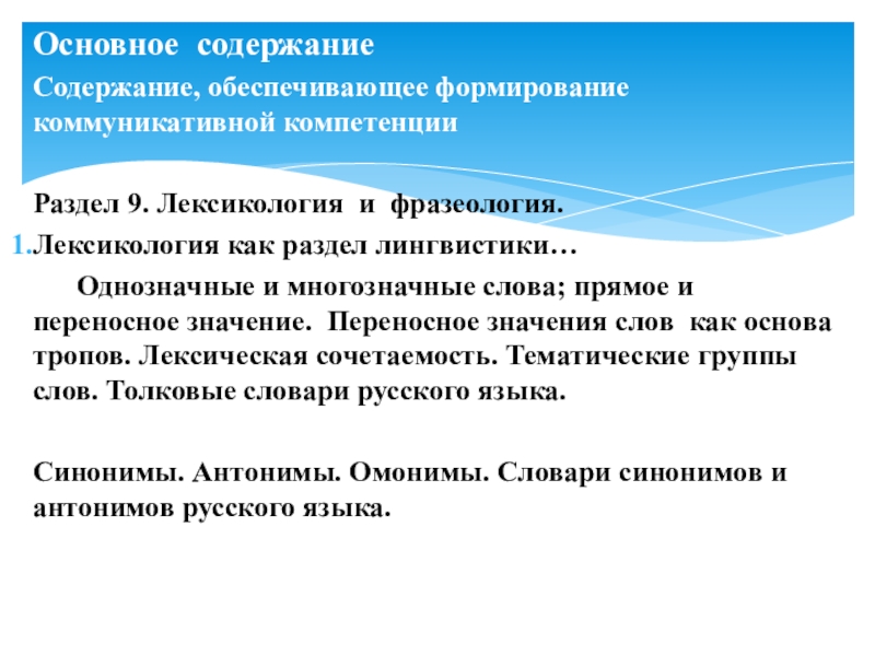 Содержание, обеспечивающее формирование коммуникативной компетенции